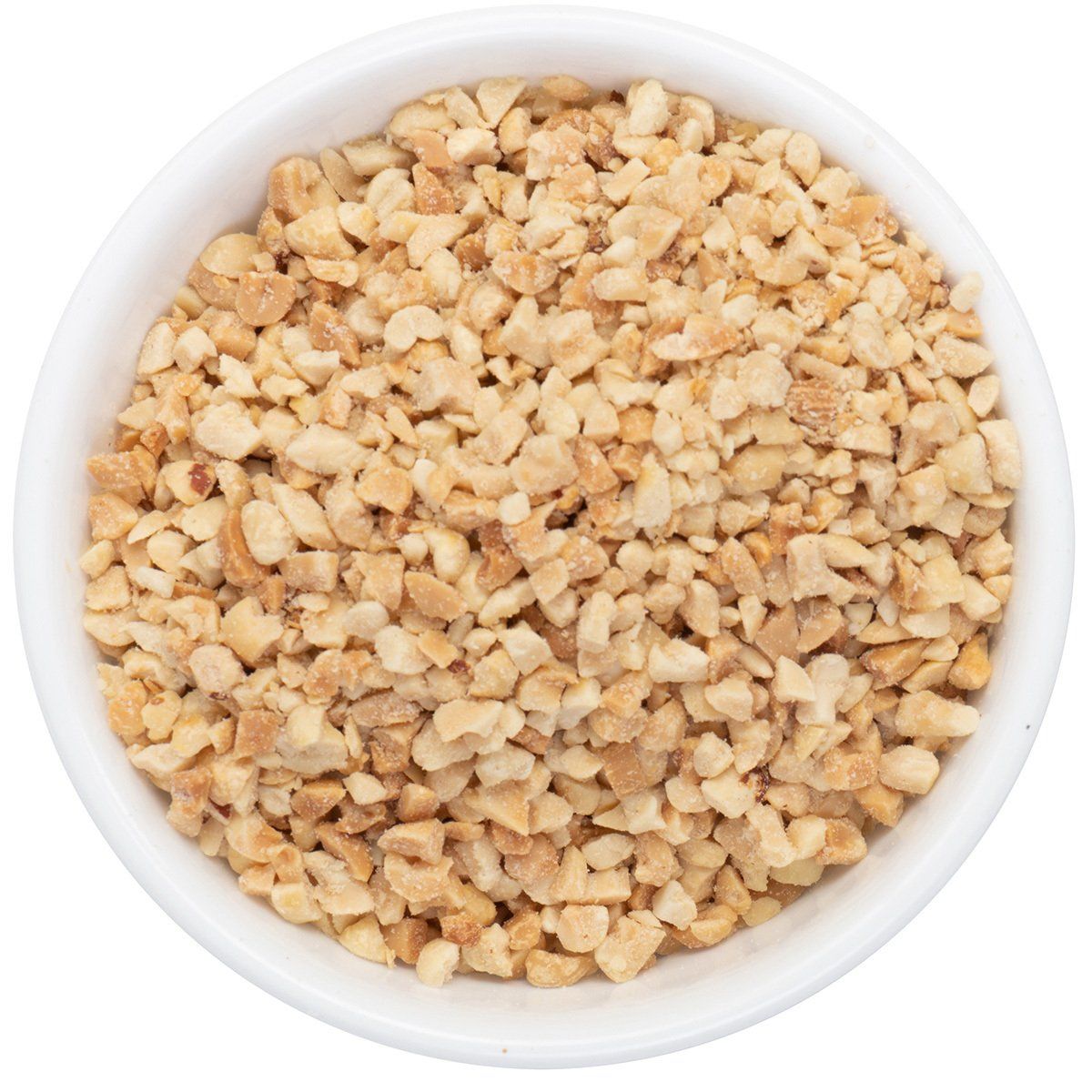 The crushed roasted peanut kernels is mostly used as condiment in candies, cakes, biscuits or different kinds of dishes to add peanut flavor. Compared with whole roasted peanut kernels, it has more surface area, which can make the peanut easier to release its aroma and flavor. Besides, as the peanut is crushed into smaller particles or powder, is will be easier to get mixed with other foods evenly. For candies and cakes as decorator, the crushed peanut is also better than the whole peanut.